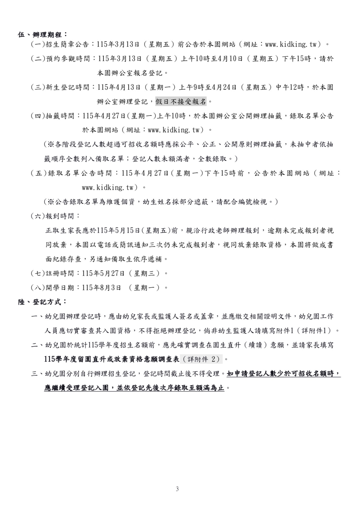感謝您關注本園,今日(3/13)公告115學年度招生簡章,請至本園官網「相關資源」→「檔案下載」下載簡章,謝謝。